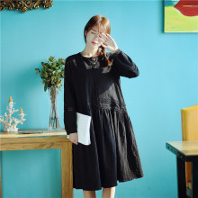 微笑向暖春装新款女复古中长款棉麻提花长袖连衣裙腰圆领显瘦长裙