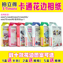 包邮富士拍立得mini白边3寸相纸立拍得凯蒂猫KT花边卡通胶片纸