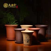 大德号 宜兴紫砂花盆 精品盆景盆 多肉植物花盆 带托盘兰花盆小