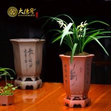 宜兴精品刻绘紫砂四方兰花盆建兰四季兰草花卉绿植兰花专用紫砂盆