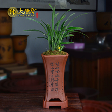 君子兰花盆宜兴精品盆景盆栽刻绘带托盘六方签筒兰草吊兰紫砂花盆