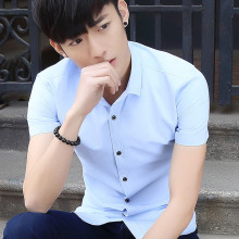男装短袖衬衫夏天青年衣服男士夏季半截袖衣服修身称寸衫男土衬衣