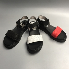 金冠2017新款外贸特价真皮女鞋韩版松糕底露趾一字型舒适女凉鞋