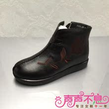 2016新款外贸特价真皮女鞋平底侧拉链毛里女短靴大码女靴妈妈鞋