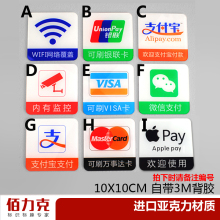 亚克力银联标志门贴支付宝微信苹果支付监控WIFI万事达卡标识牌