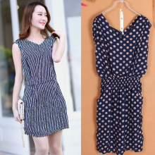夏季新品韩版全棉花条纹连衣裙无袖修身透气显瘦绵绸裙子大码女装