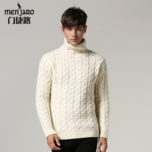 门捷路秋冬男款高领麻花针织衫毛衣 青年复古长袖套头纯色羊毛衫