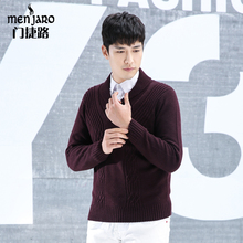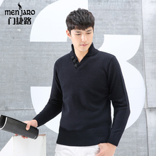门捷路秋冬男士羊毛针织衫修身青果领套头保暖毛衣外套男