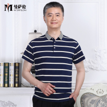 曼萨伦夏季t恤男短袖翻领格子商务休闲中老年丝光棉宽松爸爸装T恤
