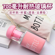 简趣大容量耐热玻璃杯男士女士水杯创意水瓶便携杯子1000ml