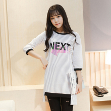 新款女装韩版圆领字母箭头竖条纹卫衣连衣裙
