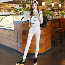 新款女装韩版宽松条纹短袖+九分裤休闲时尚套装