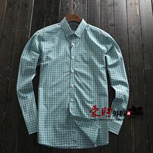 春季新款 男士时尚商务休闲格子修身长袖衬衫 男装韩版衬衣外套