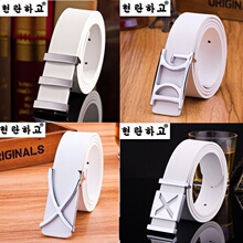 X字母扣头正品男士皮带青年潮流黑白时尚男女腰带平滑扣个性裤带