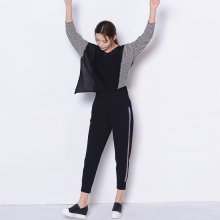 哈伦裤女九分裤夏撞色大码显瘦女裤小脚裤夏季黑色韩版条纹运动裤