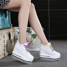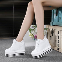 内增高女鞋韩版高帮帆布鞋女鞋子超高跟12cm厚底松糕白色板鞋潮