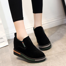 春季韩版内增高女鞋8cm运动鞋女高跟坡跟休闲鞋磨砂浅口百搭单鞋