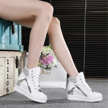春夏韩版隐形内增高女鞋高帮鞋白色休闲鞋坡跟运动鞋女平底单鞋潮