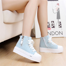 厚底帆布鞋女系带韩版学生松糕底内增高女鞋百搭透气休闲鞋高帮鞋
