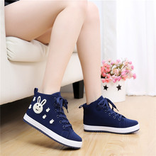 韩版潮高帮蓝色布鞋女单鞋休闲女生春夏帆布鞋大童平跟小学生板鞋