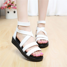 凉鞋女夏季韩版平底大童学生百搭平跟拉链黑白防滑简约罗马女鞋
