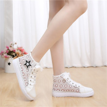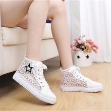2017少女平底白色板鞋休闲春夏透气镂空帆布鞋高帮女可爱学生单鞋