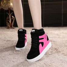 韩版冬季加厚厚底内增高加绒女松糕坡跟高跟鞋白色时尚高帮鞋棉鞋