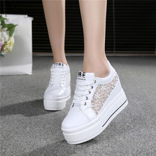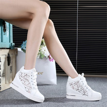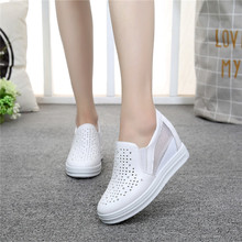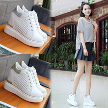 春夏镂空透气厚底网纱内增高女鞋运动网鞋休闲鞋平底白色高帮单鞋