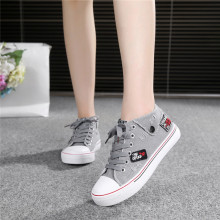 帆布鞋女夏季透气初中学生浅口平跟系带韩版休闲可爱百搭拼色女鞋