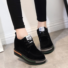 春季厚底内增高女鞋8cm休闲加厚磨砂高帮鞋坡跟百搭高跟女单鞋