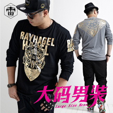 雷哈格尔潮牌春季胖子加肥加大号肥佬特大码男装长袖T恤烫金体恤