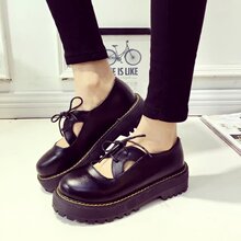 2016夏秋新款潮复古圆头英伦学院风系带厚底浅口单鞋娃娃小皮鞋女