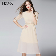 HZVZ新品女装2017修身显瘦欧美中裙子小清新雪纺连衣裙女夏中长款