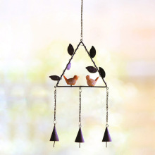 zakka杂货 欧式铁艺小鸟风铃金属风铃 家居装饰壁挂三角形风铃