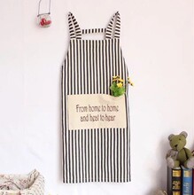 日式纯棉麻围裙 地中海清新韩条纹咖啡奶茶厨房工作服