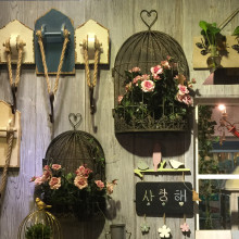 美式乡村法式复古 铁艺鸟笼服装店橱窗墙面壁挂壁饰家居装饰花架