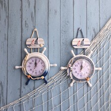 地中海舵手钟 钟表 墙壁装饰创意挂件 蓝白海洋风格小挂钟