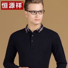 恒源祥男士长袖T恤秋中年男商务休闲羊毛t恤男上衣爸爸装体恤春