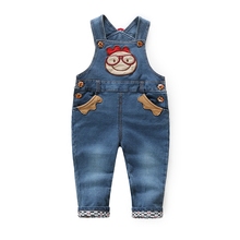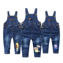 图勒童装宝宝牛仔背带裤春秋新款男女童宽松长裤小童婴儿卡通裤子