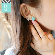 缔素立体玫瑰花耳钉女气质简约韩版甜美软陶塑料耳环925银针清新