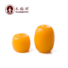 米格丽-鸡油黄再造蜜蜡桶珠 琥珀顶珠腰珠浅黄星月金刚DIY散珠