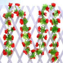 仿真玫瑰花藤条壁挂假花藤暖气管室内客厅装饰吊顶塑料花藤蔓批发