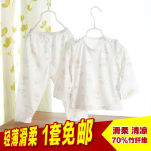 小素材夏季薄款儿童内衣长袖竹纤维儿童睡衣竹纤维空调服宝宝睡衣