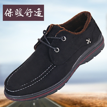 冬季新款加绒棉鞋厚传统老北京布鞋男士爸爸鞋中老年保暖防滑套脚