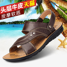 承发夏季男士凉鞋真皮沙滩鞋 男土休闲爸爸中老年人大码凉拖男鞋
