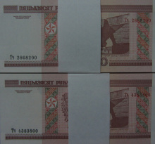全新白俄罗斯50卢布整刀一百张 外国纸币 外币 外国钱币 欧洲钱币