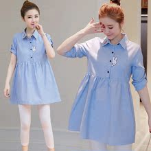 孕妇连衣裙夏装韩版时尚娃娃裙春夏大码衬衫上衣中长款孕妇裙潮妈