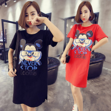 孕妇装春夏装长袖纯棉上衣中长款韩版大码卡通T恤春季孕妇连衣裙