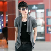 夏季非主流男装假两件短袖T恤男夏薄款青春学生修身男士蝙蝠衫潮