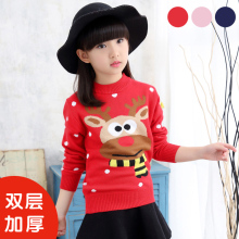 包邮 女童毛衣秋冬童装儿童圣诞小鹿圆领套头针织衫中大童打底衫